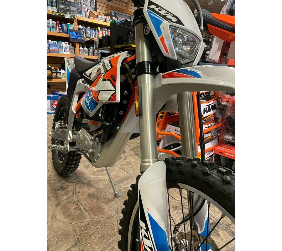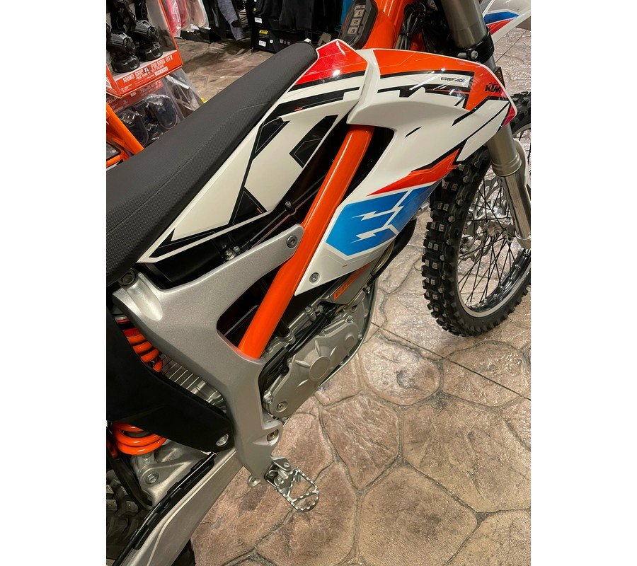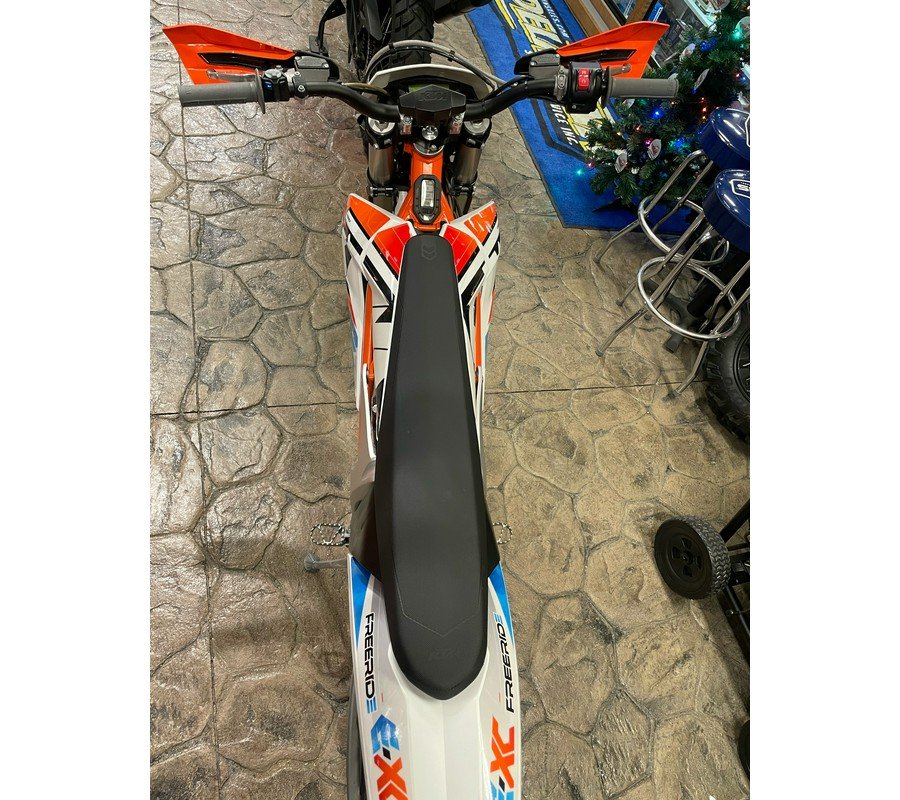 - CHASSIS: The chassis of the KTM FREERIDE E-XC was developed specifically to meet the demands of an electric offroad motorcycle. KTM has assembled a package of its most innovative solutions, including a steel-aluminum composite frame and a subframe made of high-strength polyamide. The KTM FREERIDE E-XC thus guarantees playful handling, with the peace of mind that comes with a low seat height, in addition to low weight, a strong frame, strong brakes and first-rate suspension components with long travel.
