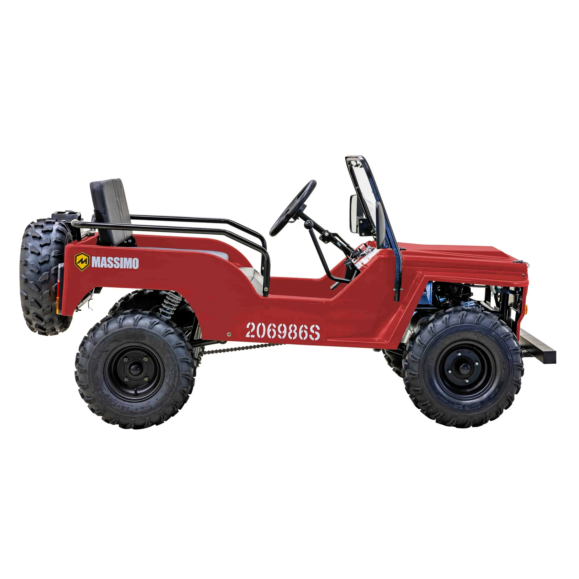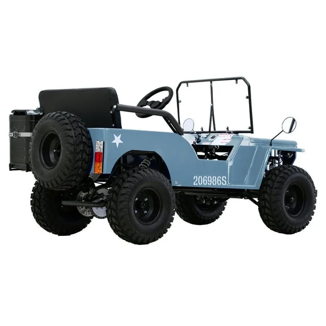 | Features | Padded Water-Resistant Seats, Rugged Steel Wheels, Headlights, Taillights & Turn Signals, GO KART, MINI JEEP, MASSIMO MOTOR, BLUE |