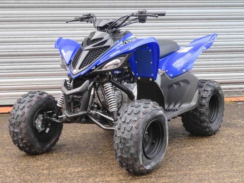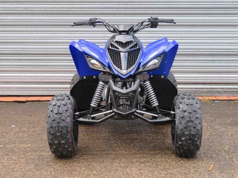 We present here for sale this Yamaha YFM90R Quad. IN STOCK NOW!! The YFM90R may be small in size, but it’s equipped with several features found on larger Yamaha models – including double A-arm independent front suspension, CVT transmission and electric start. The YFM90R balances power with a range of features to give you total peace of mind. A simple CDI plug-in adjusts engine power output to suit different riding abilities while a parking brake on the handlebar ensures that the YFM90R stays exactly where you last left it. The fully automated gearbox makes it even easier to ride and it’s thinking like this that makes YFM90R the kids’ ATV that adults love too. Specification of the Quad are:- Fully automatic CVT transmission, electric start, Chain drive, Parking brake, Throttle limiter, F/N/R gears and Comfortable ergonomics. The bike is available for viewing and is well worth a look. Finance is available and is subject to status. Nationwide delivery can be arranged from as little as £130. Usual Dealer facilities including a Large range of clothing, helmets & accessories.